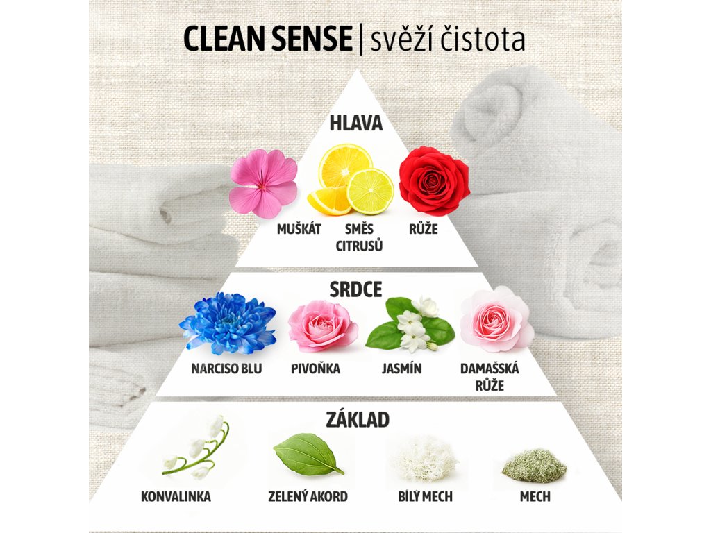 Vůně, která evokuje pocit čerstvě vypraného prádla – čistá, elegantní a dlouhotrvající.