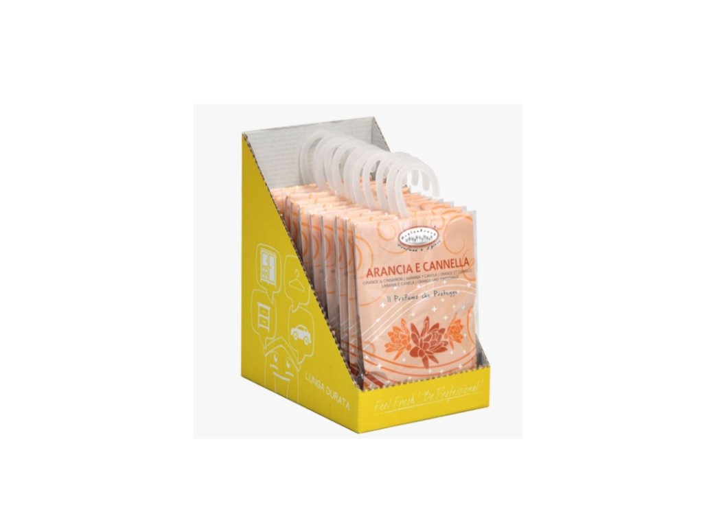 Parfémovaný sáček Arancia e Cannella je napuštěn vůní pomeranče se skořicí pro osvěžení vašeho domova, provonění vašich textilií a především pro zajištění příjemného prostředí, ve kterém se budete cítit skvěle. Nechte se unést svěží vůní pomeranče se skořicí a užívejte si okamžiky plné svěžesti a harmonie.